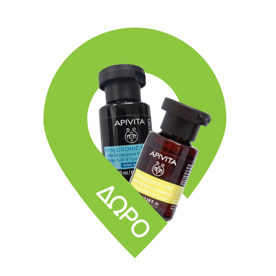 Με αγορά 2 τεμαχίων από τις σειρές μαλλιών/βαφές Apivita 2 Δώρα τα Mini shampoo Frequent Use 20ml & Hyaluronic Hydra 20ml. Ισχύουν 2 δώρα ανά παραγγελία και έως εξαντλήσεως των αποθεμάτων.