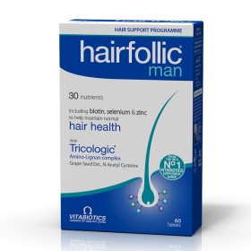 Το Hairfollic Man της Vitabiotics είναι έναειδικό, εξειδικευμένο προιόν με βιο-ενεργά θρεπτικά συστατικά,που παρέχει τα οφέλη τους μέσω της κυκλοφορίας του αίματος, για βέλτιστα αποτελέσματα και με αποδεδειγμένη δράση στην υγεία του τριχωτού της κεφαλής και το μεταβολισμό του θύλακα της τρίχας.